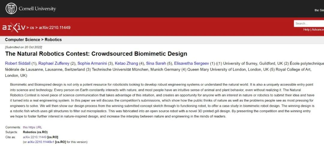 机器鱼的相关研究刊登在康奈尔大学的 arXiv 数据库中。